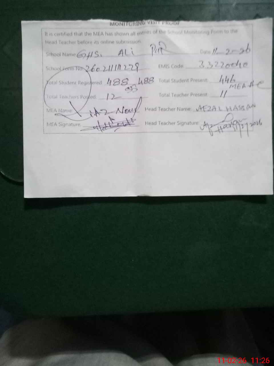 | EMIS Code: 33220040 | Name of School: GHS ALI PUR | |||