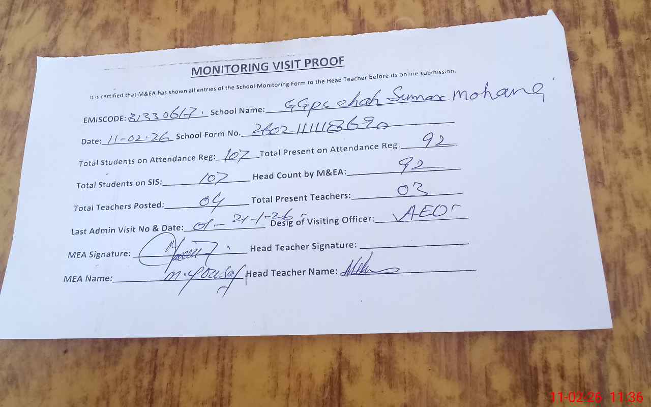 | EMIS Code: 31330617 | Name of School: GGPS CHAH SUMAR MOHANA | |||