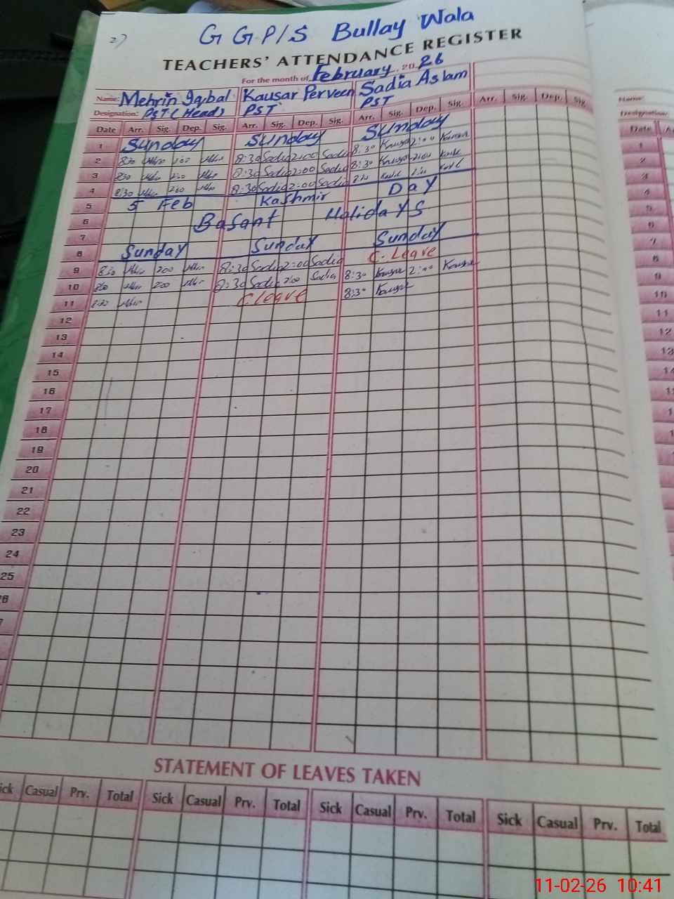 | Leave | Duty | Absent | Maternity | Medical | Ex- Pak |