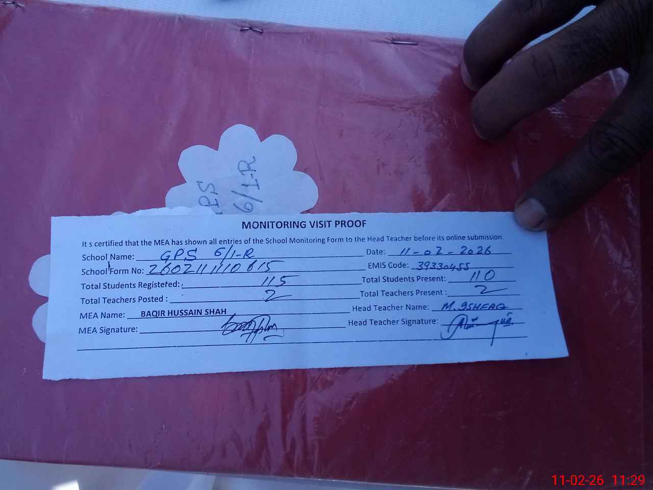 | EMIS Code: 39330455 | Name of School: GPS CHAK 6/1-R | |||