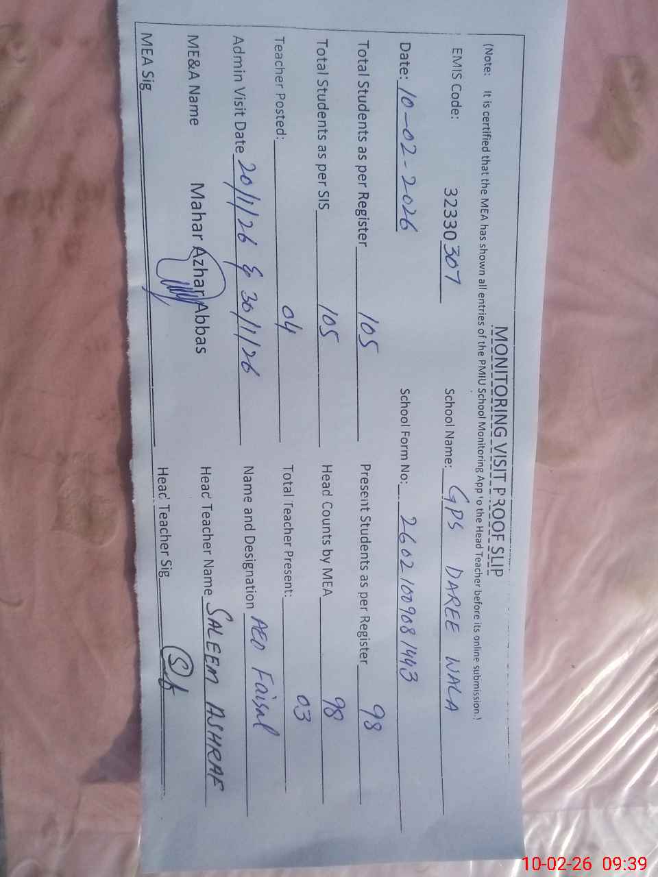 | EMIS Code: 32330307 | Name of School: GPS DAREE WALA | |||