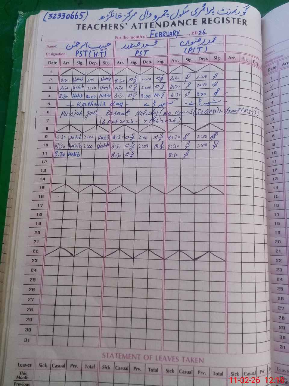 | CNIC | Full Name | Designation | R/C | Absence During Last Calender Month |
