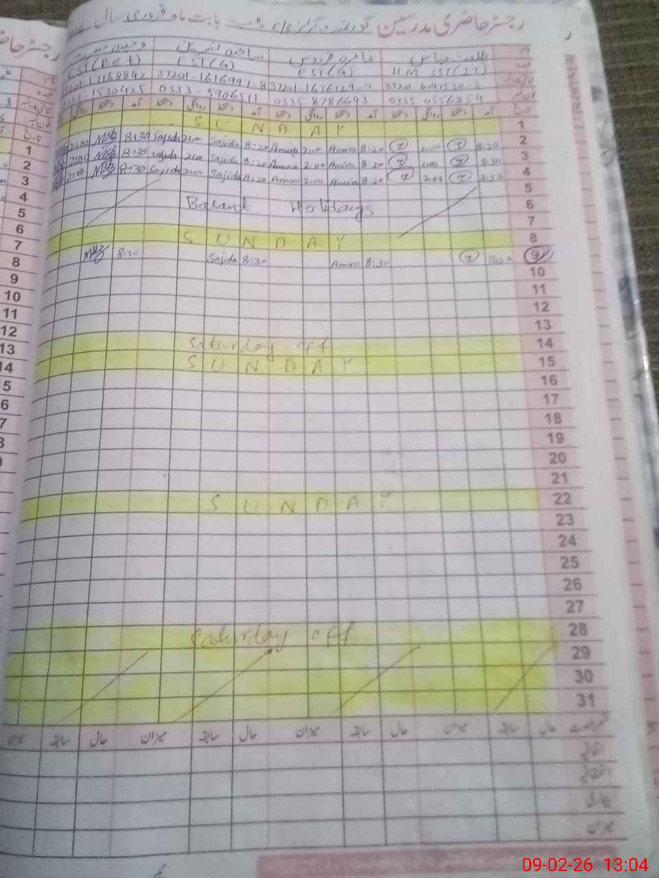 | CNIC | Full Name | Designation | R/C | Absence During Last Calender Month |