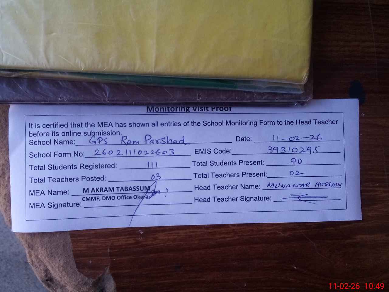 | Monitoring Date: 11-02-2026 | Start Time: 11-02-2026 10:22 AM | End Time: 11-02-2026 10:49 AM | Name of MEA: MU**** AK**** TA**** | |