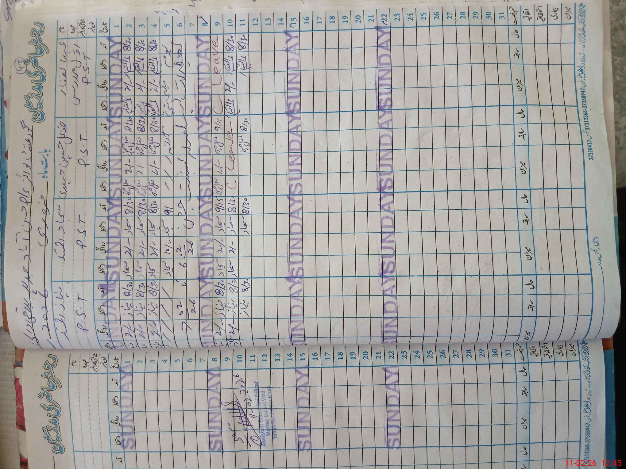 | CNIC | Full Name | Designation | R/C | Absence During Last Calender Month |