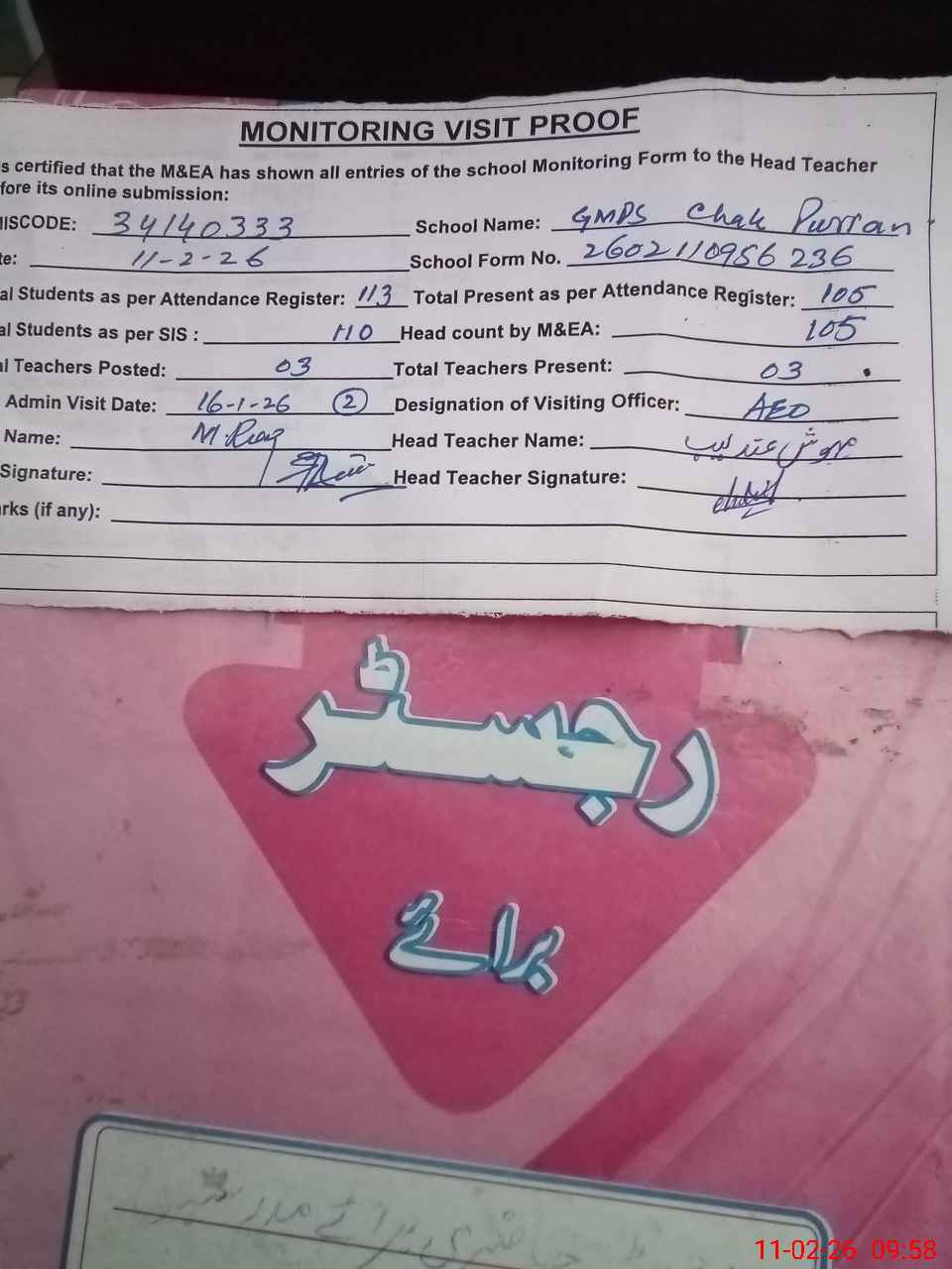 | EMIS Code: 34140333 | Name of School: GMPS CHAK PURIAN | |||