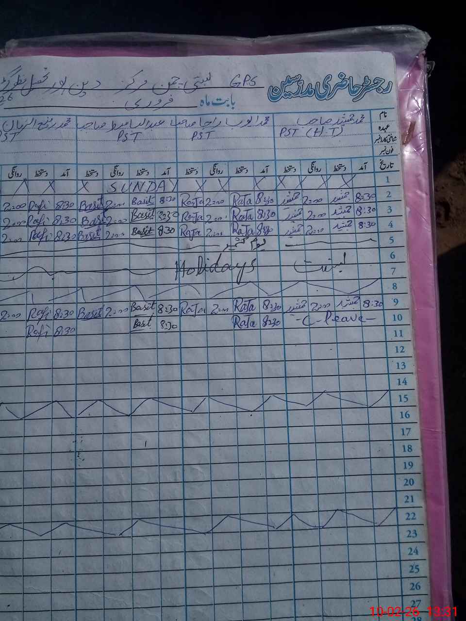 | CNIC | Full Name | Designation | R/C | Absence During Last Calender Month |