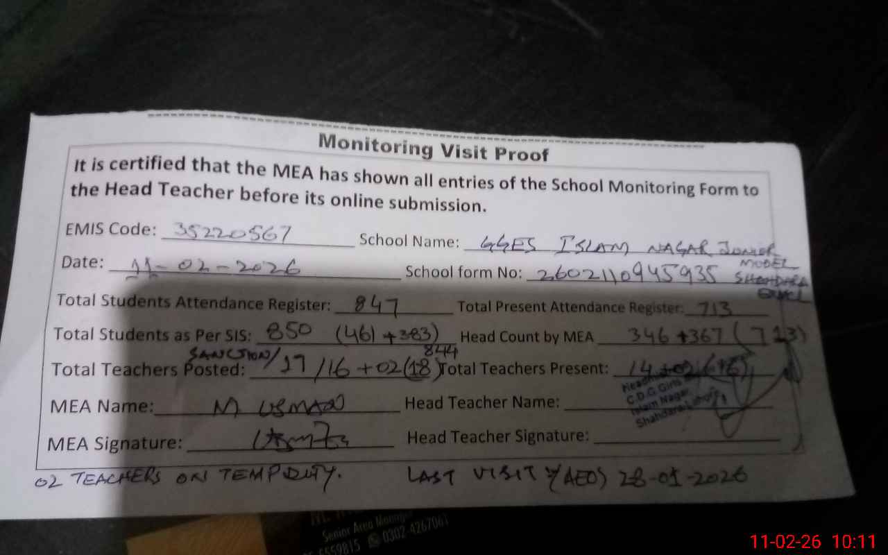 | EMIS Code: 35220567 | Name of School: GGES JUNIOR MODEL ISLAM NAGAR SHAHDARA (EX-MCL) | |||