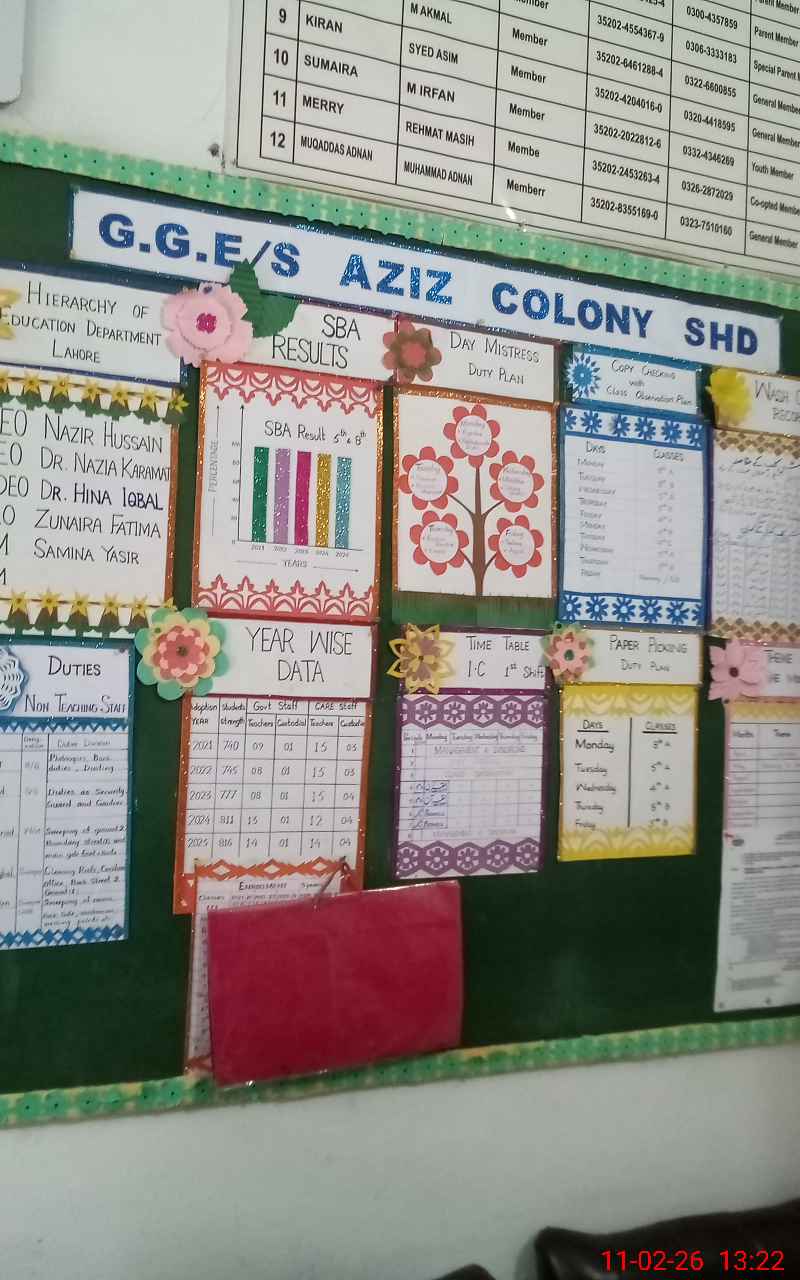 | EMIS Code: 35220404 | Name of School: GGPS AZIZ COLONY SHAHDARA | |||