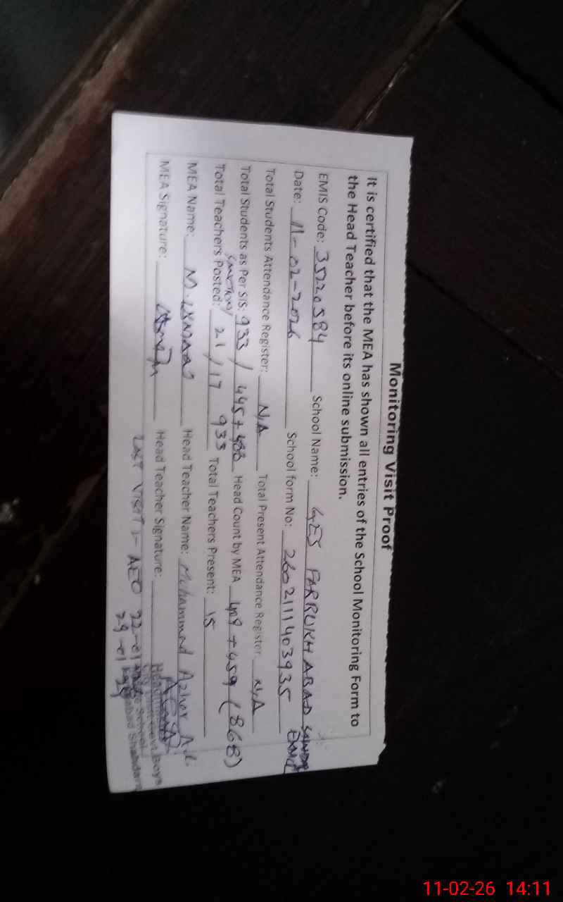 | EMIS Code: 35220584 | Name of School: GES FARRUKH ABAD SHAHDARA (EX-MCL) | |||