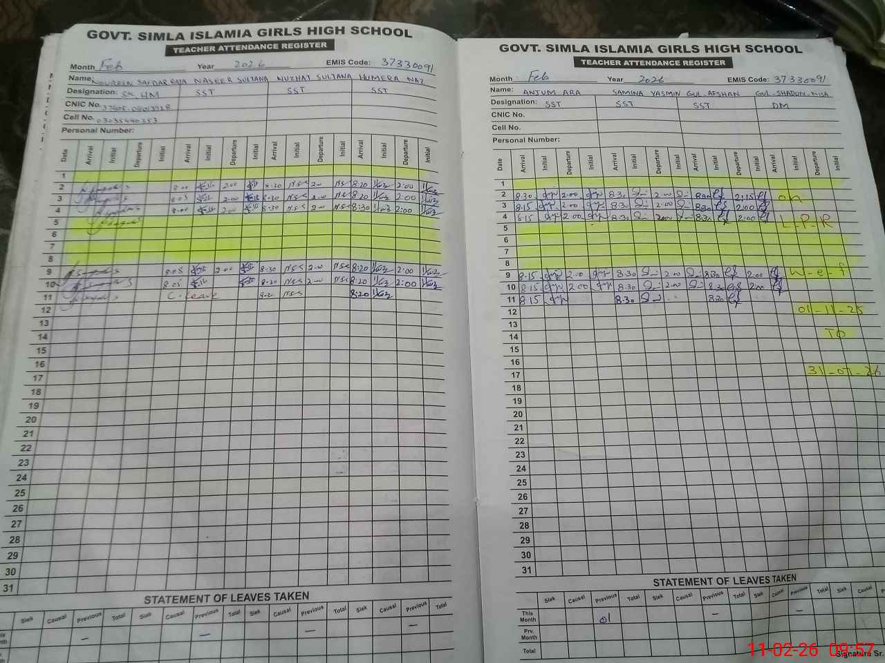 | EMIS Code: 37330091 | Name of School: GGHS SIMLA ISLAMIA RWP | |||
