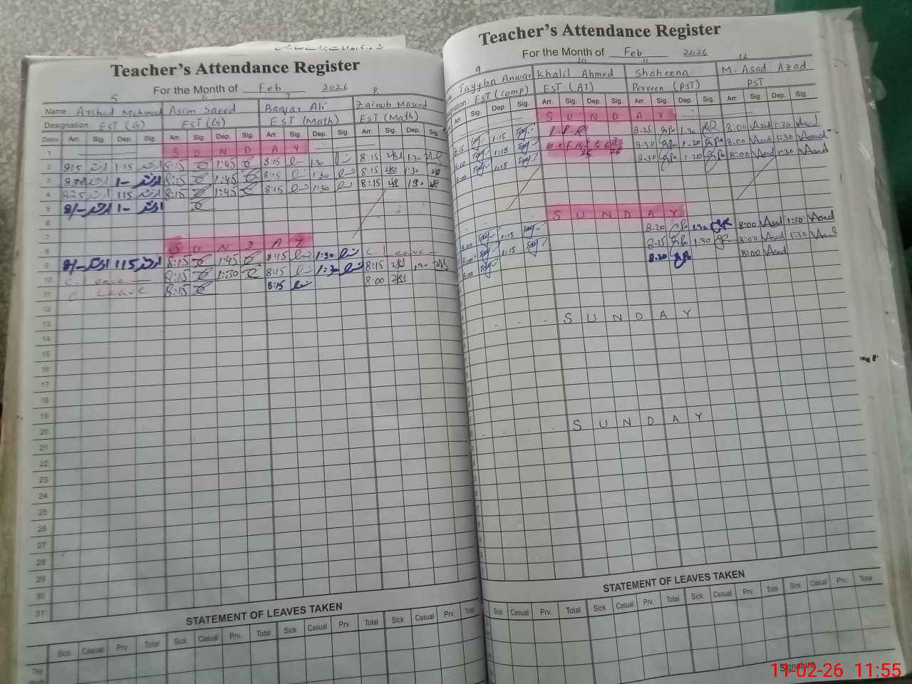 | Leave | Duty | Absent | Maternity | Medical | Ex- Pak |