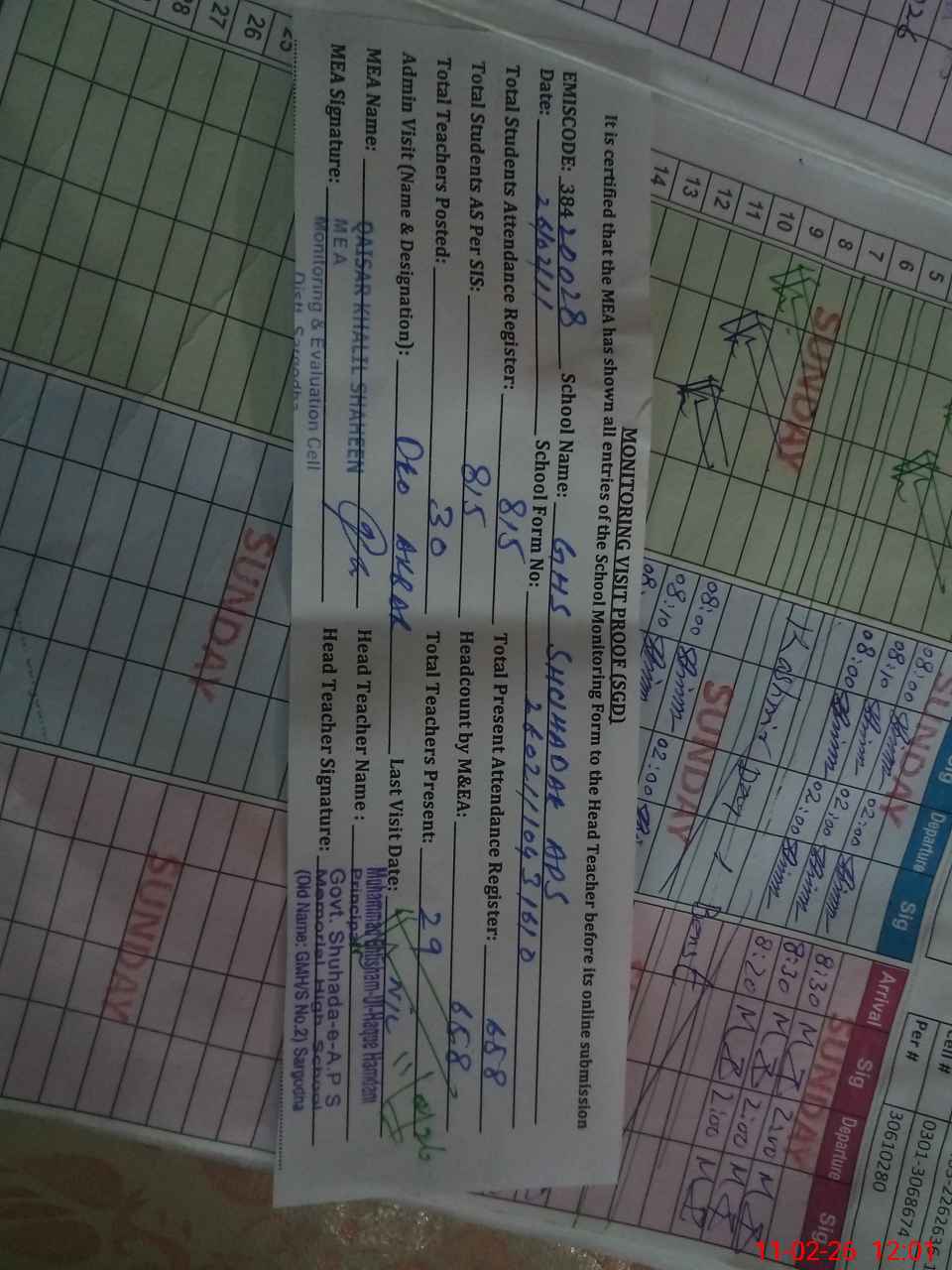 | EMIS Code: 38420028 | Name of School: Govt. Shuhada-e-APS Memorial High School Sgd | |||