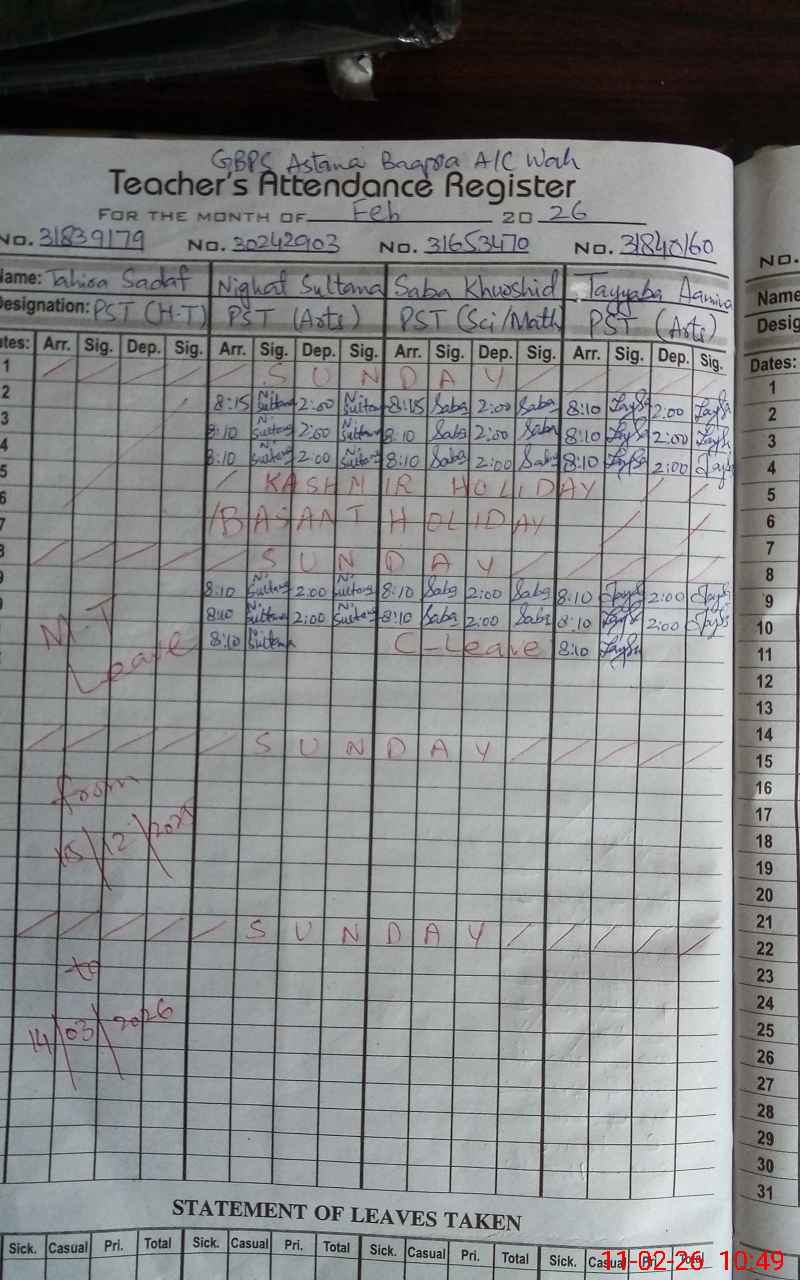 | 34**** | Sa**** Kh**** | PST Science/Maths | Regular | 0 | 0 | 0 | 0 | 0 | 0 | 0 | 0 | 0 | Casual |