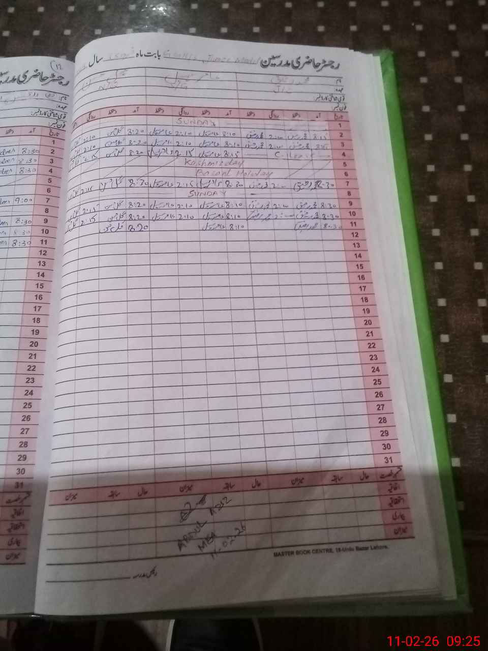| CNIC | Full Name | Designation | R/C | Absence During Last Calender Month |