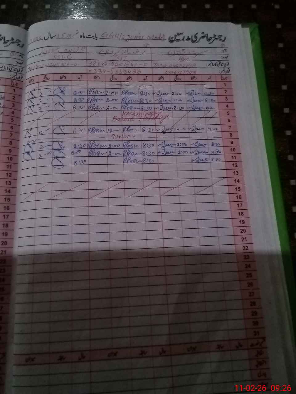 | Name: Mu**** Ja**** Designation: (School Headmaster's/Headmistress's) Head Mistress Phone/Cell Number: 03**** |