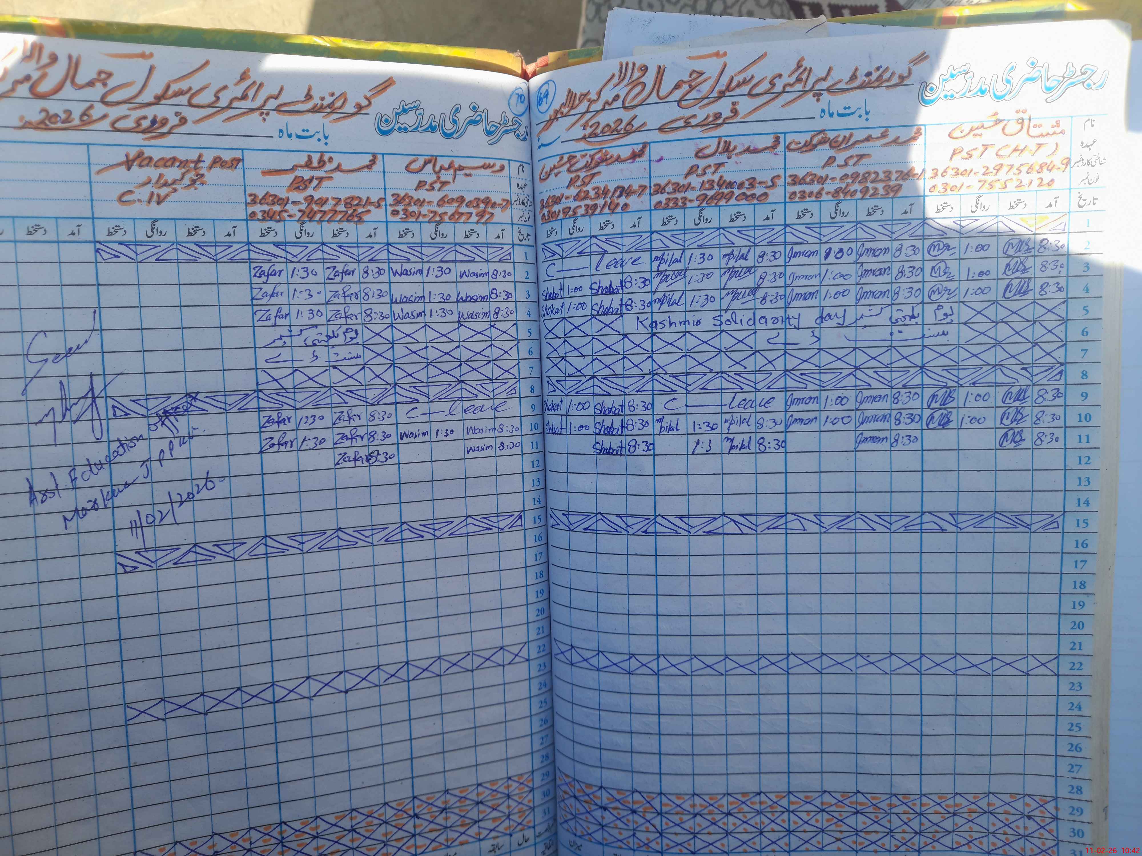 | Name: Mu**** Hu**** Designation: (School Headmaster's/Headmistress's) PST Phone/Cell Number: 03**** |