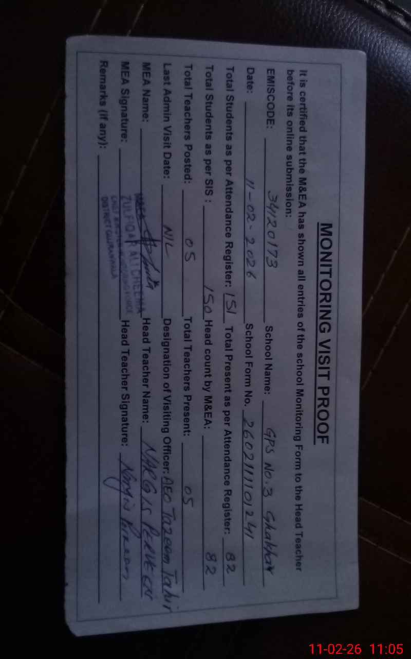 | EMIS Code: 34120173 | Name of School: GPS GHAKHAR NO.3 | |||