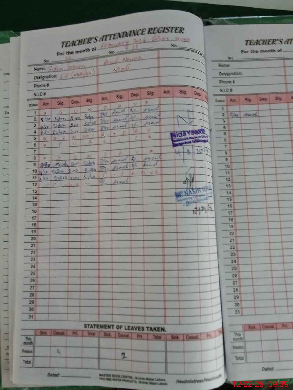 | Remarks (Use Separate Page if Required): No teacher is absent | |||||