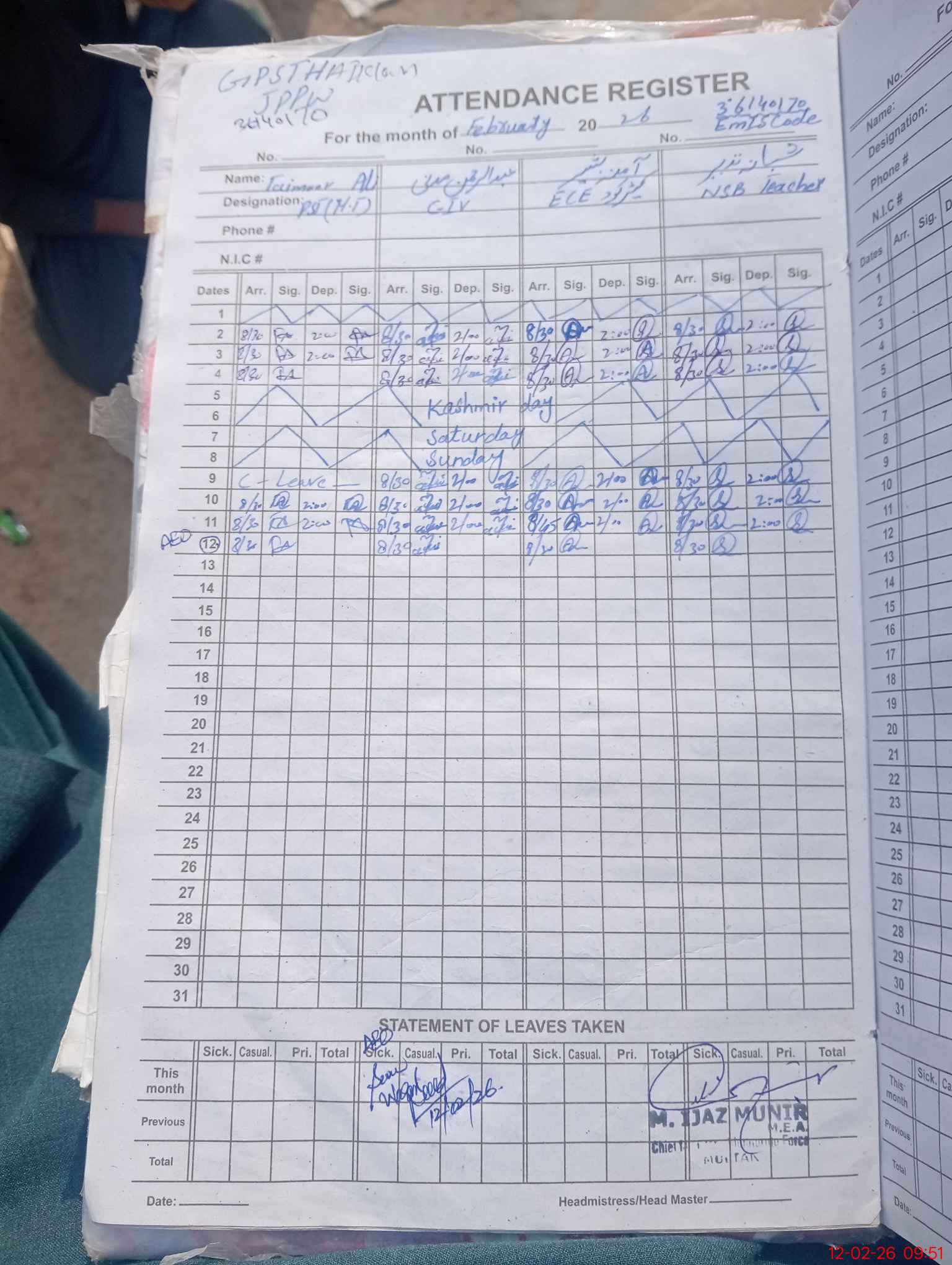 | Name: Ta**** Al**** Designation: (School Headmaster's/Headmistress's) PST Phone/Cell Number: 03**** |