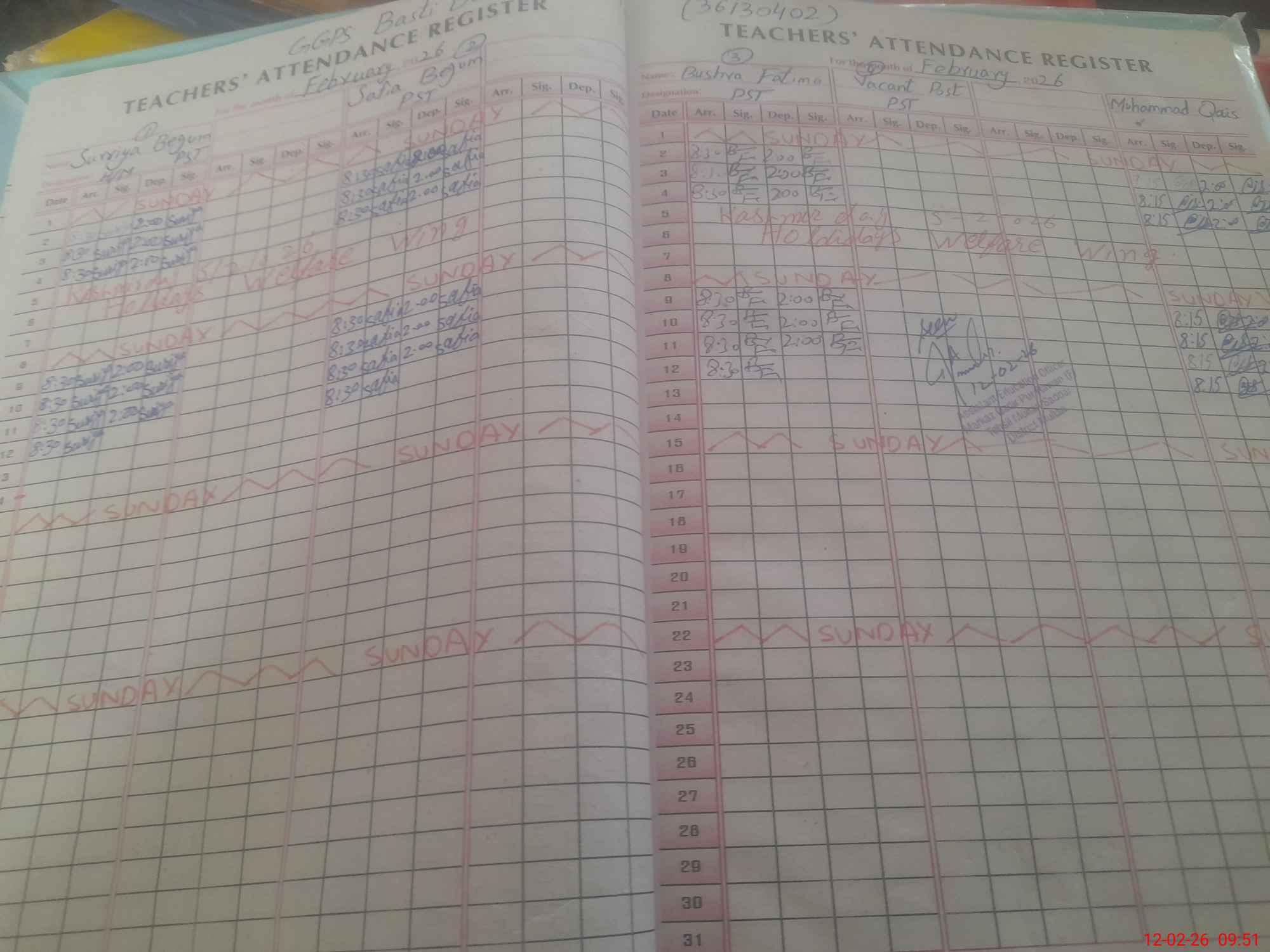 | Name: Su**** Be**** Designation: (School Headmaster's/Headmistress's) PST/PTC/JV Phone/Cell Number: 03**** |