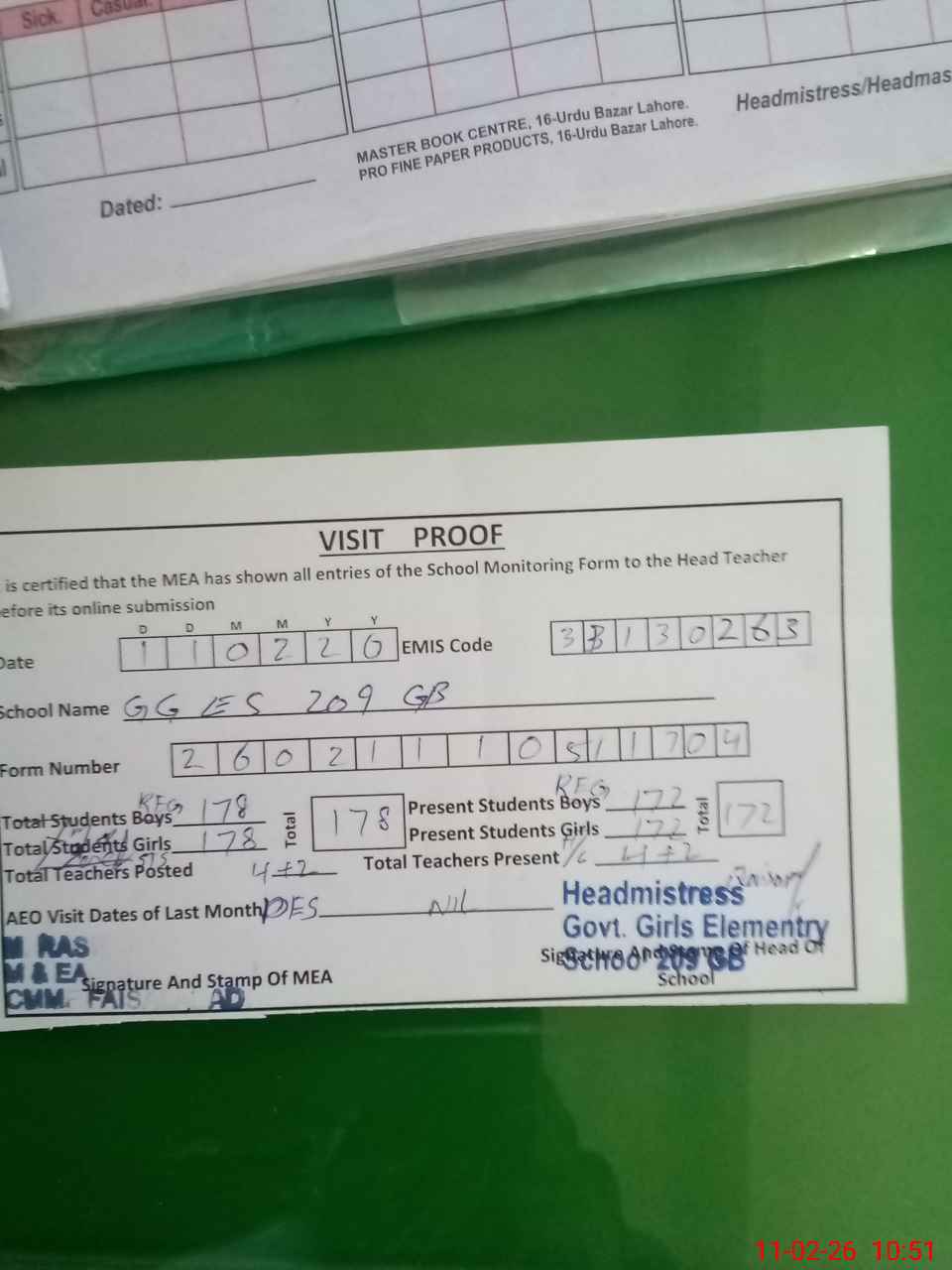 | EMIS Code: 33130263 | Name of School: GGES CHAK 209 GB SAMUNDRI | |||