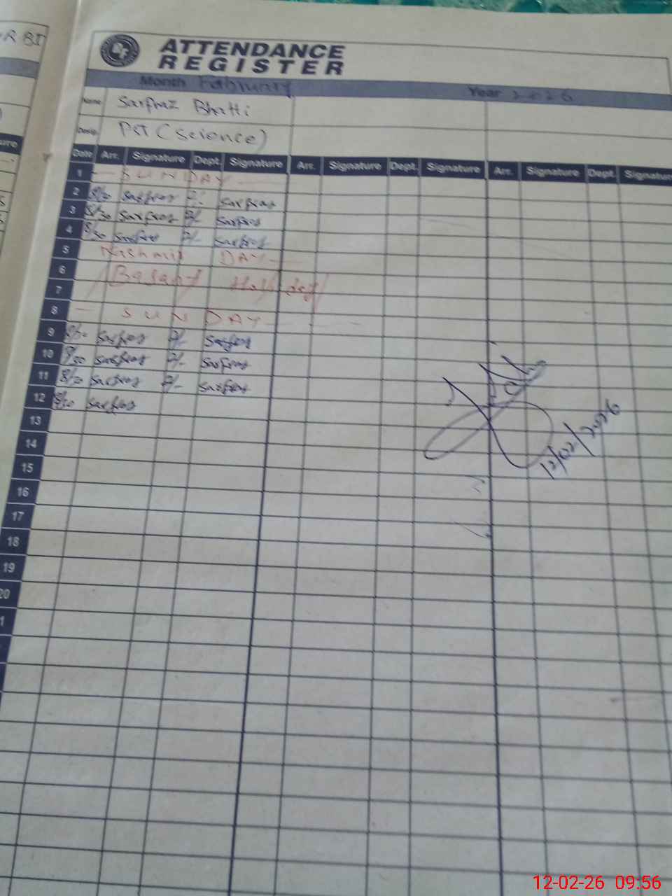 | CNIC | Full Name | Designation | R/C | Absence During Last Calender Month |