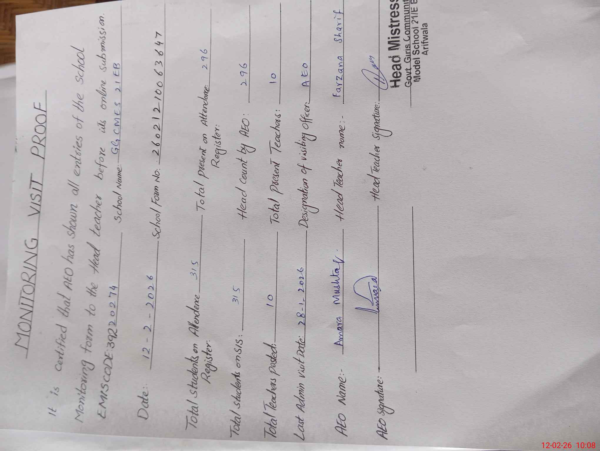 | Monitoring Date: 12-02-2026 | Start Time: 12-02-2026 09:30 AM | End Time: 12-02-2026 10:10 AM | Name of MEA: Am**** Mu**** | |