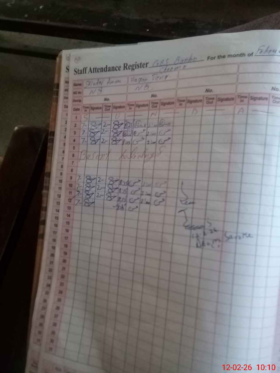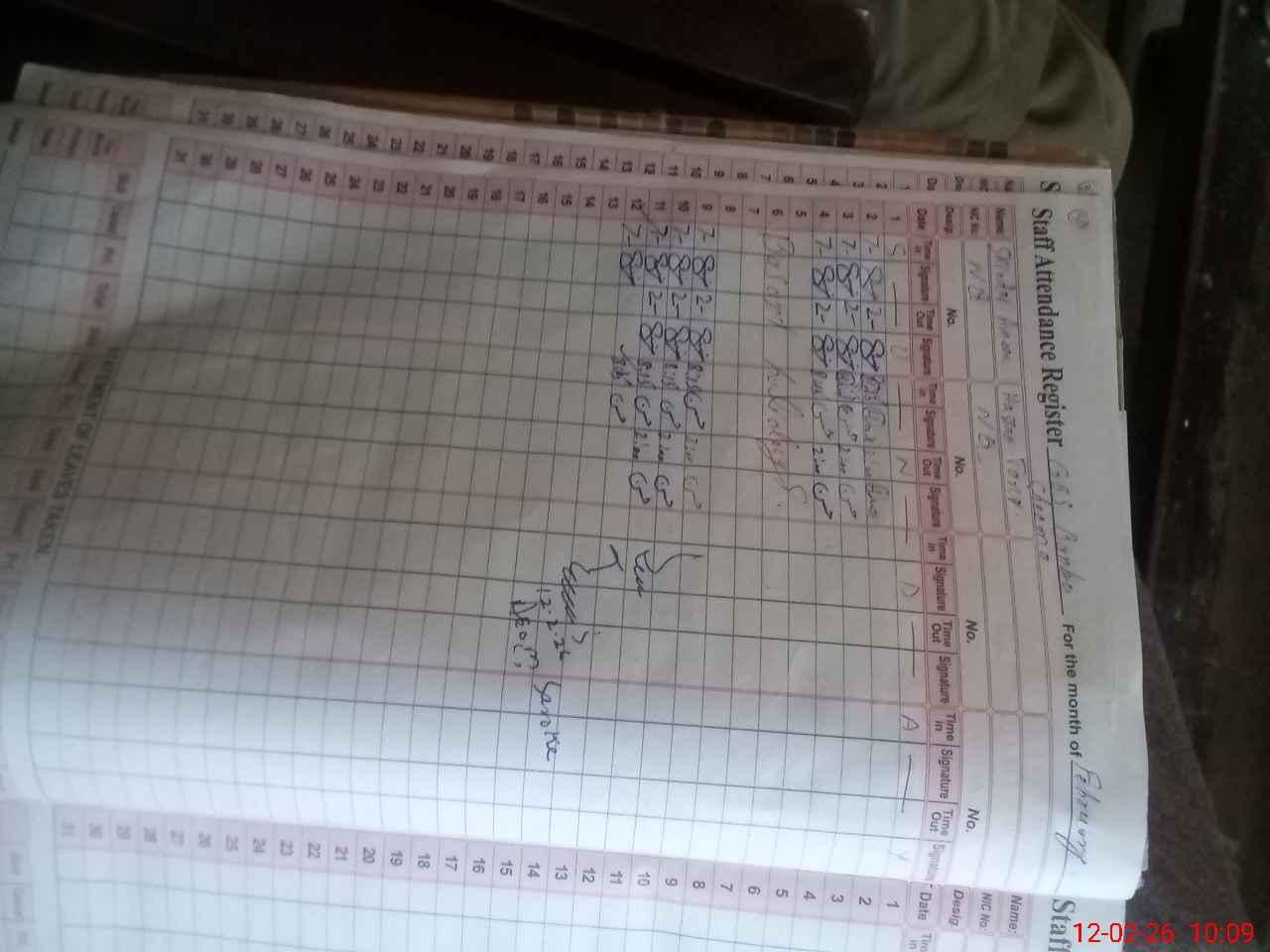 | CNIC | Full Name | Designation | R/C | Absence During Last Calender Month |