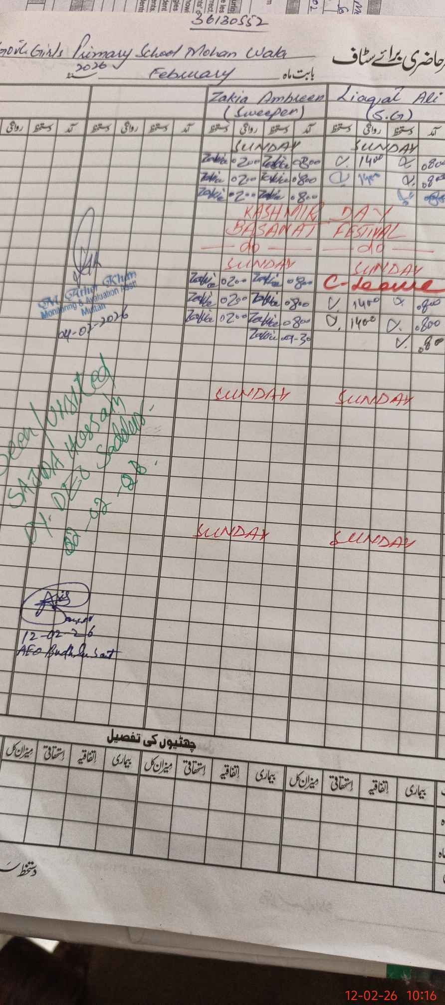 | Monitoring Date: 12-02-2026 | Start Time: 12-02-2026 09:35 AM | End Time: 12-02-2026 10:17 AM | Name of MEA: Mu**** As**** | |