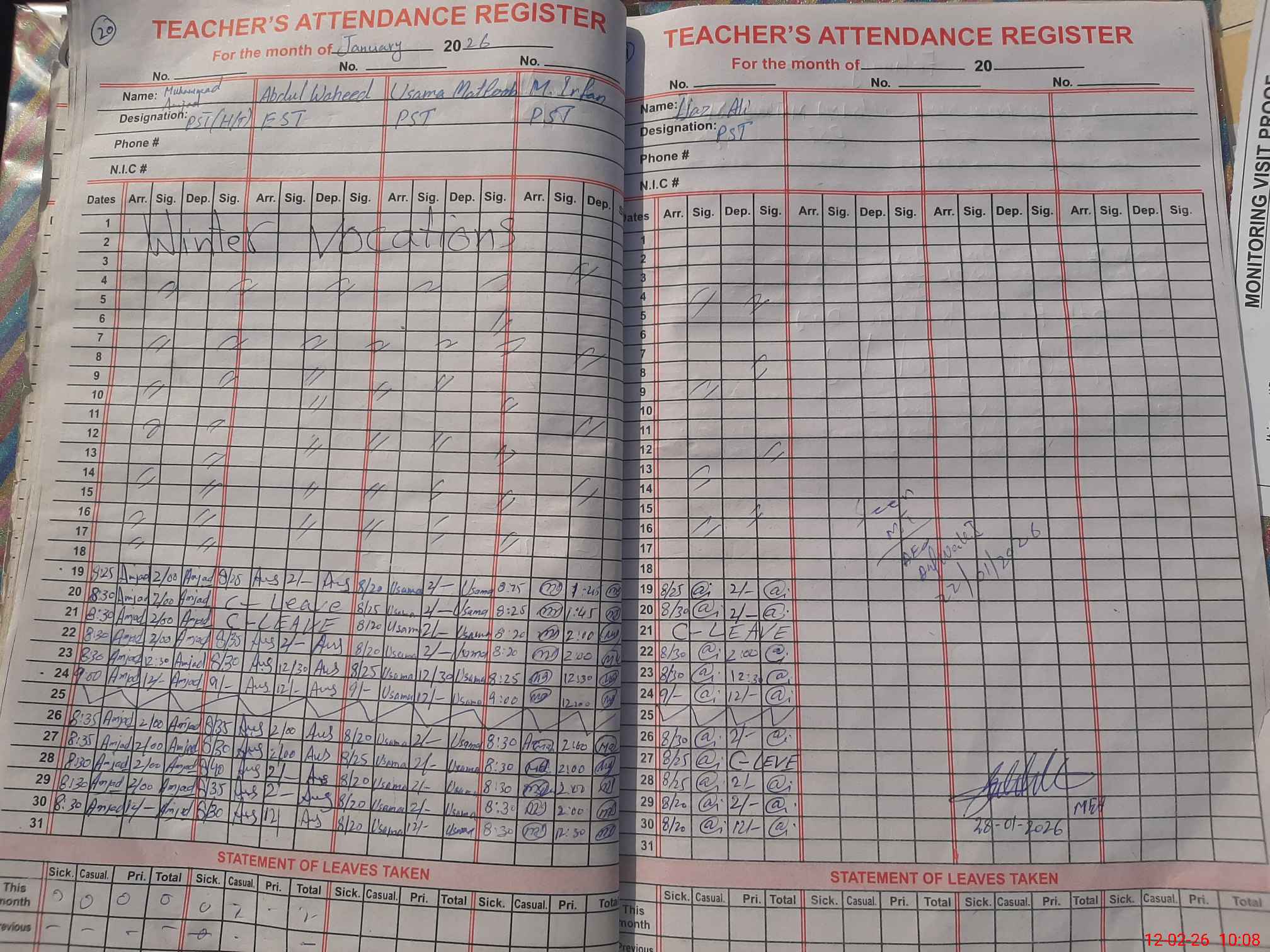 | Name: MU**** AM**** Designation: (School Headmaster's/Headmistress's) PST Phone/Cell Number: 03**** |