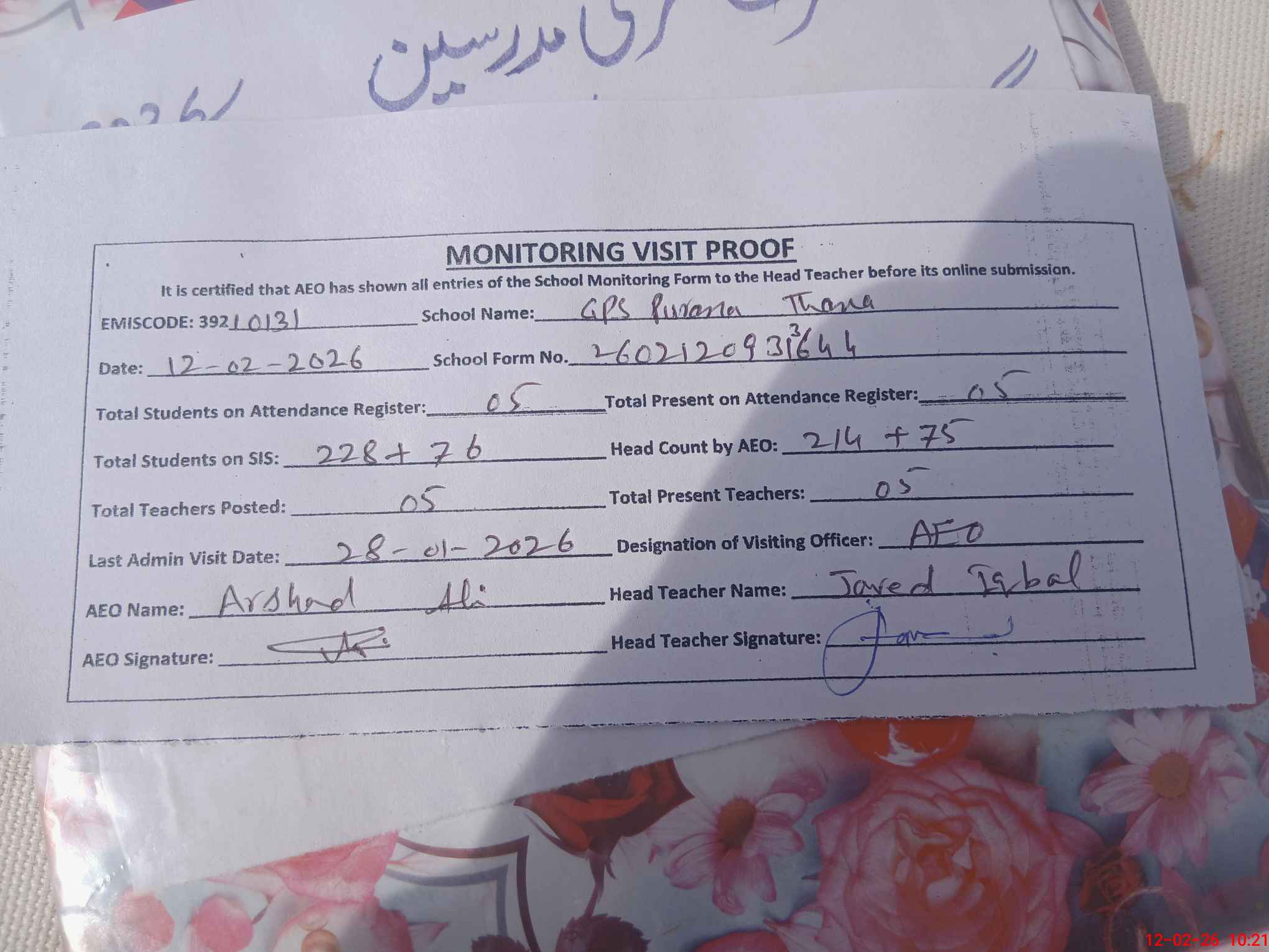 | EMIS Code: 39210131 | Name of School: GPS PURANA THANA | |||