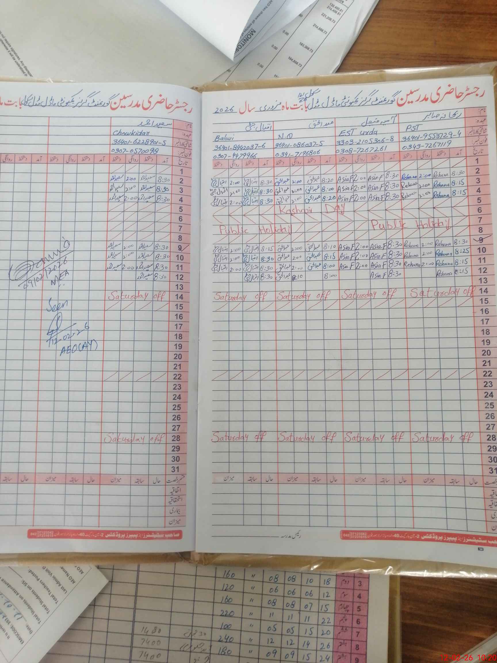 | Attendance Register | Head Teacher | MEA with School | Visit Proof |