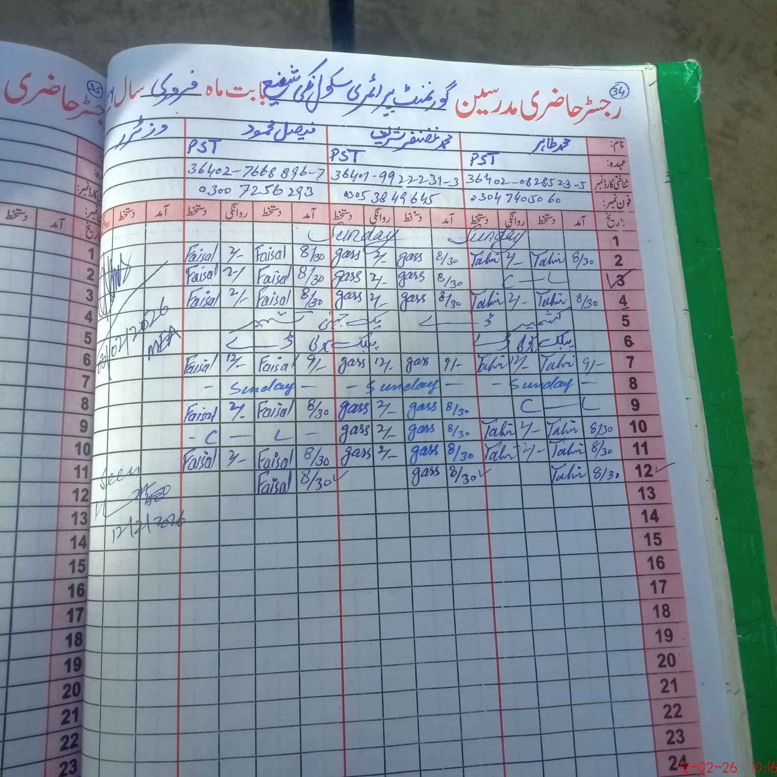 | Name: MU**** TA**** Designation: (School Headmaster's/Headmistress's) PST Phone/Cell Number: 03**** |