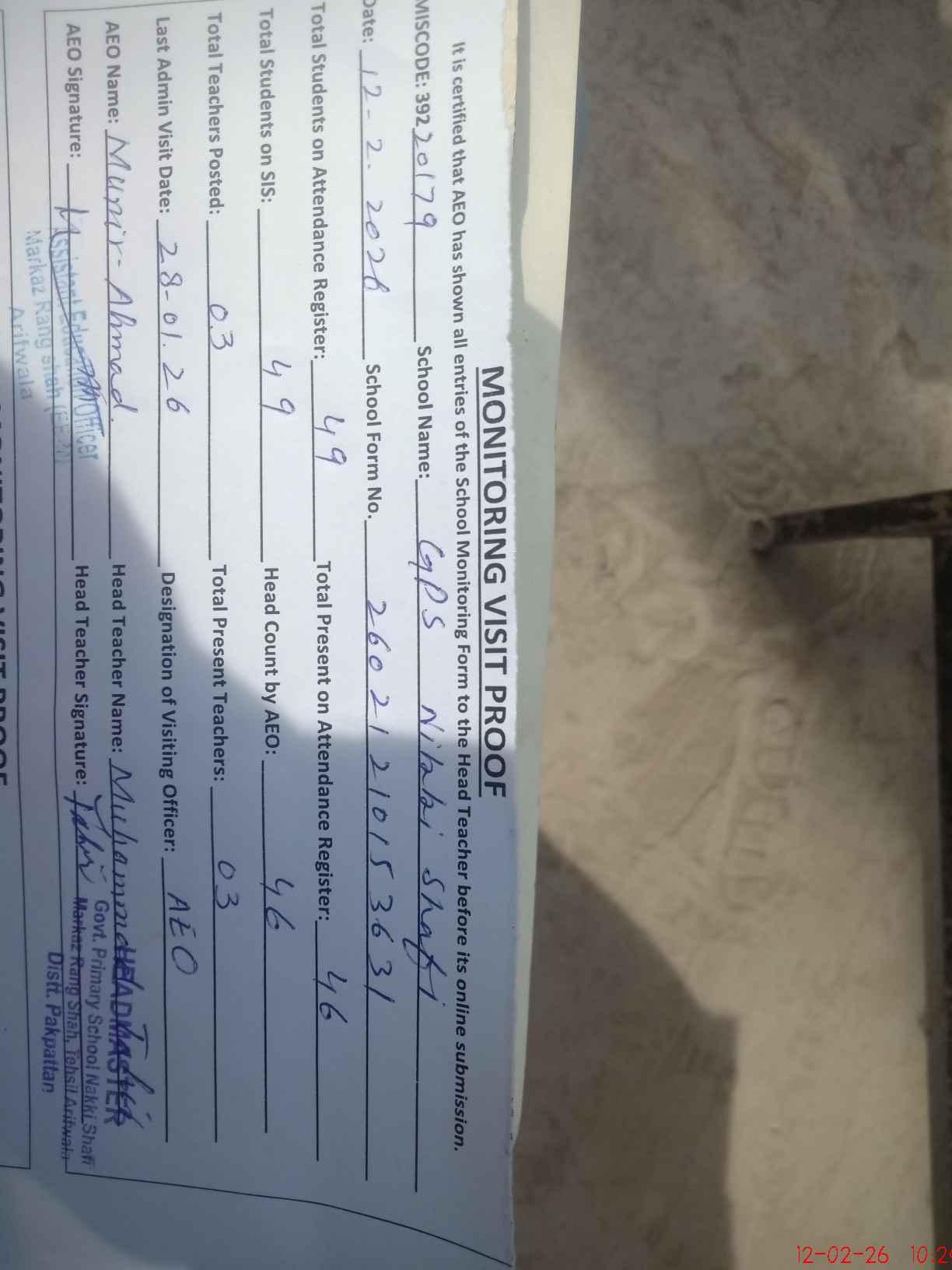 | EMIS Code: 39220179 | Name of School: GPS NIKKI SHAFI P/O SHAFI ARIFWALA | |||