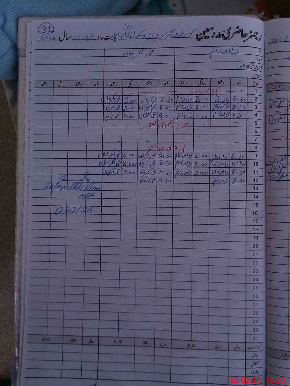 | Monitoring Date: 12-02-2026 | Start Time: 12-02-2026 10:01 AM | End Time: 12-02-2026 10:32 AM | Name of MEA: ZA**** UL**** KH**** | |