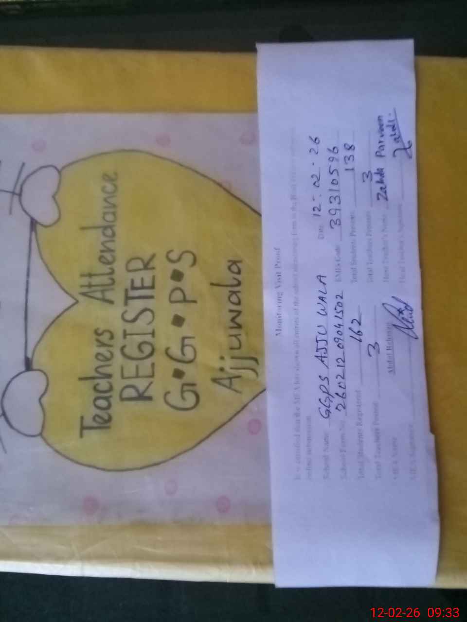 | Attendance Register | Head Teacher | MEA with School | Visit Proof |