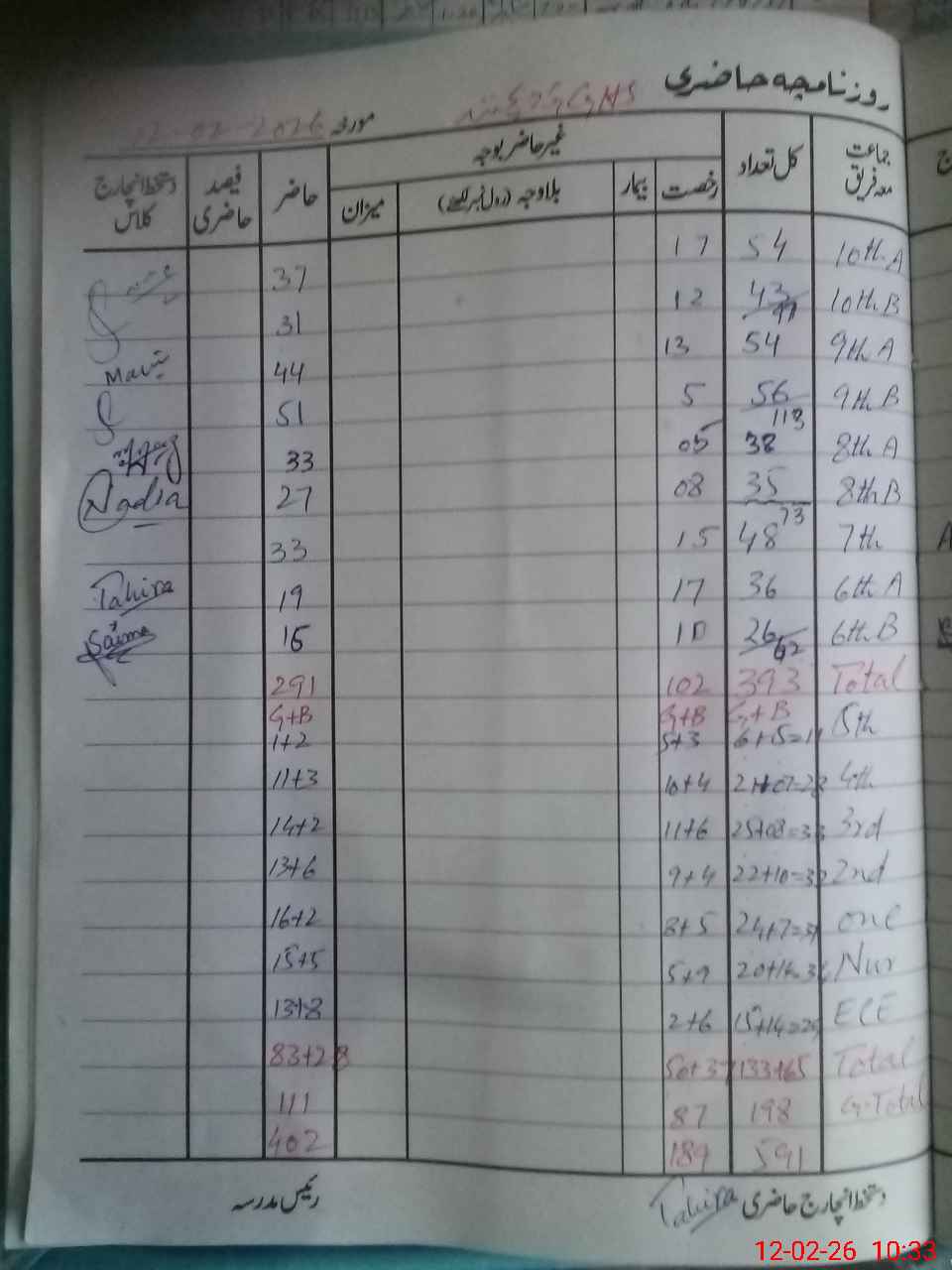 | Remarks (Use Separate Page if Required): EST Abida bibi on casual leave but without online submission and approval | |||||