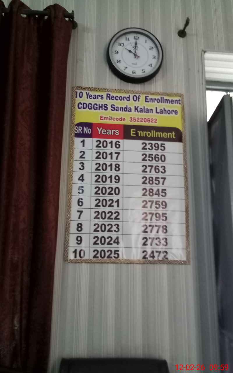 | EMIS Code: 35220622 | Name of School: GGHS SANDA KALAN (EX-MCL) | |||