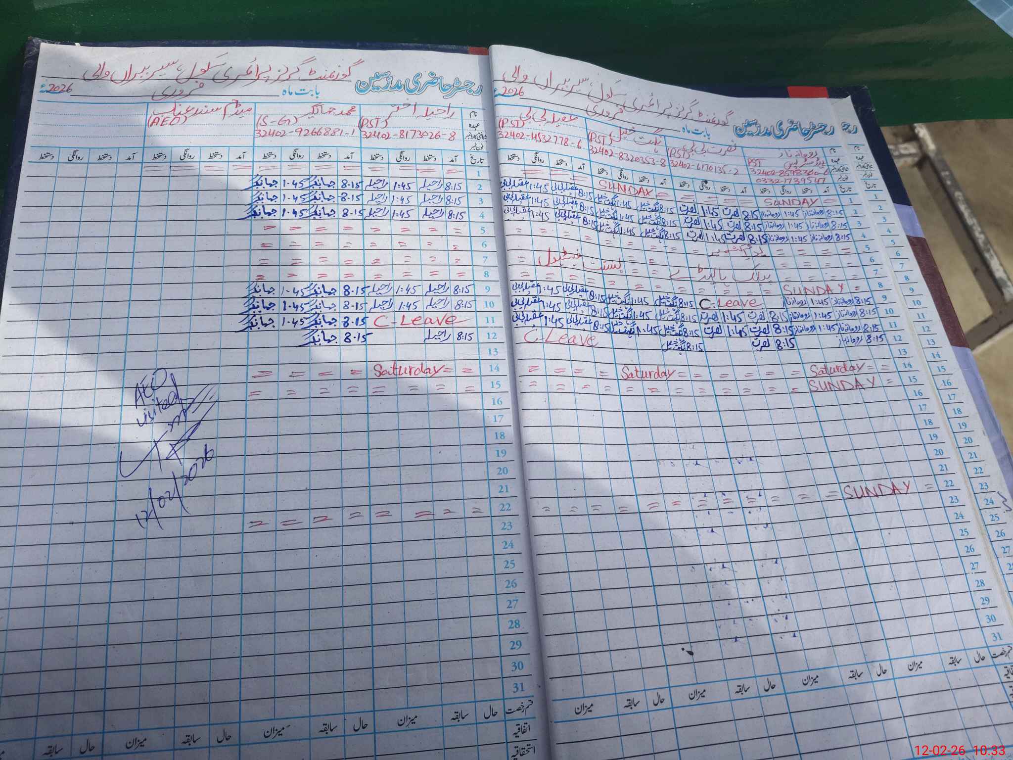 | CNIC | Full Name | Designation | R/C | Absence During Last Calender Month |