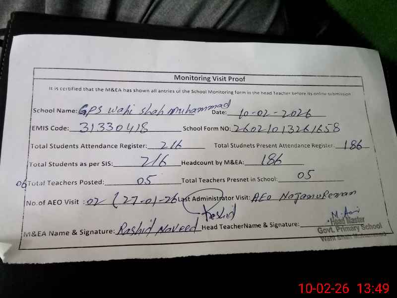 | EMIS Code: 31330418 | Name of School: GPS BASTI WAHI SHAH MUHAMMAD | |||