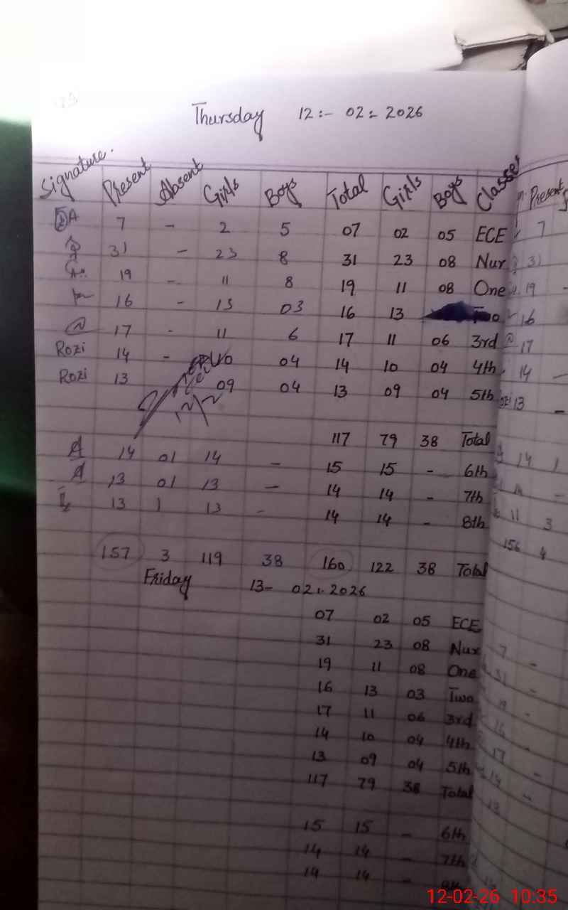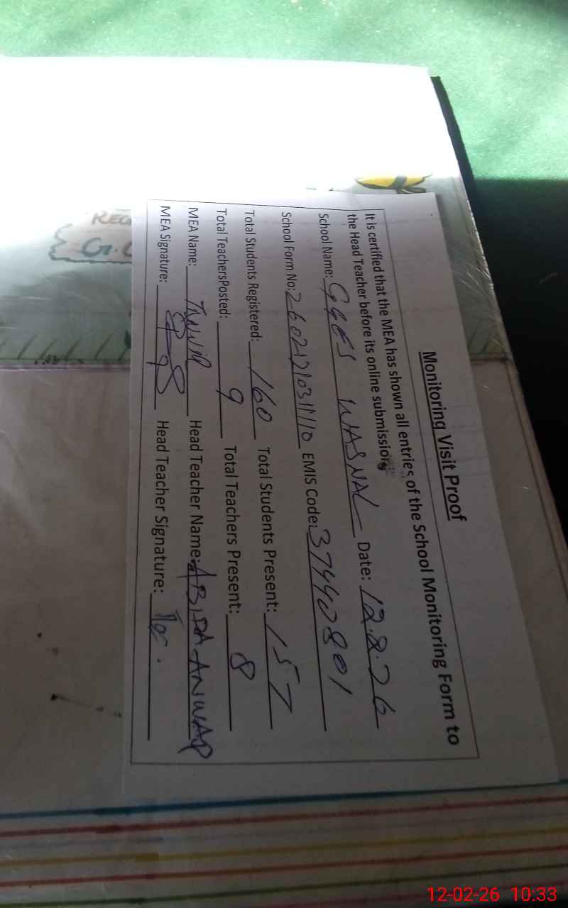 | Attendance Register | Head Teacher | MEA with School | Visit Proof |