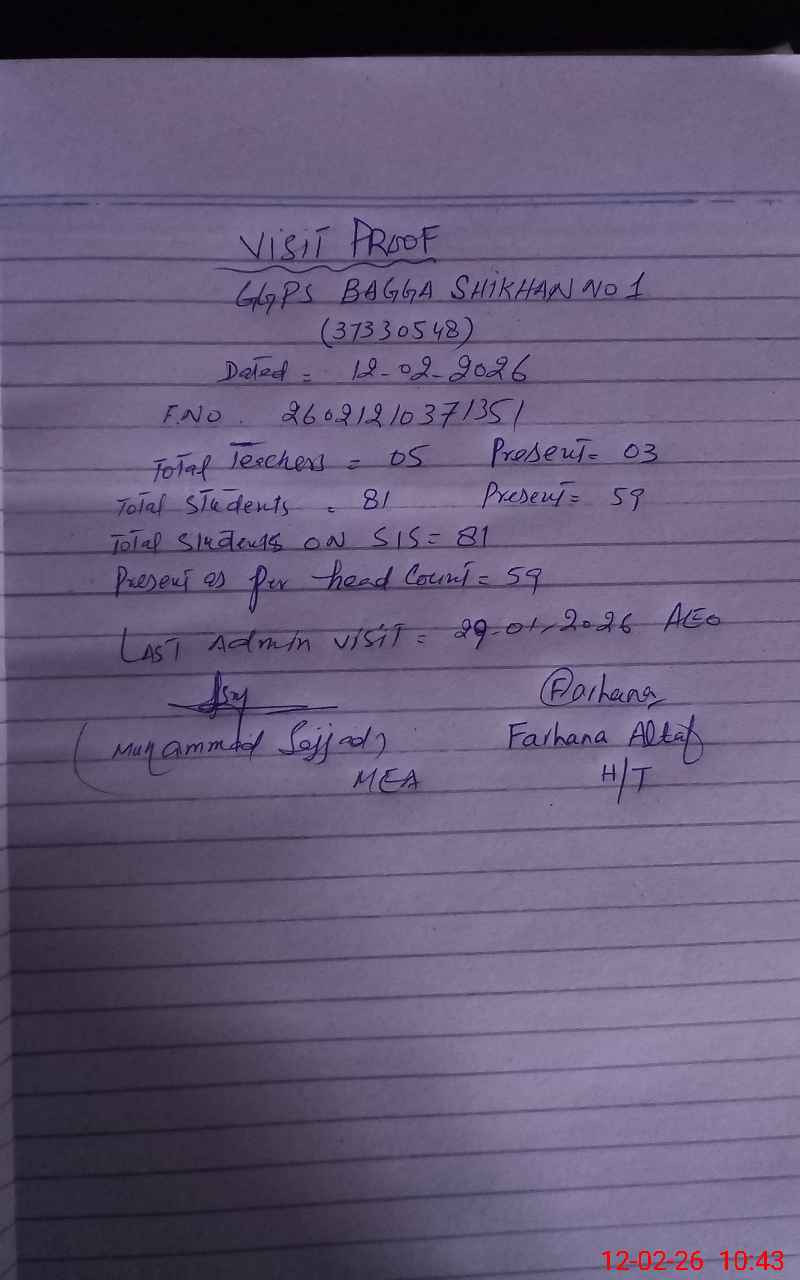 | EMIS Code: 37330548 | Name of School: GGPS BAGGA SHIKHAN NO 1 | |||