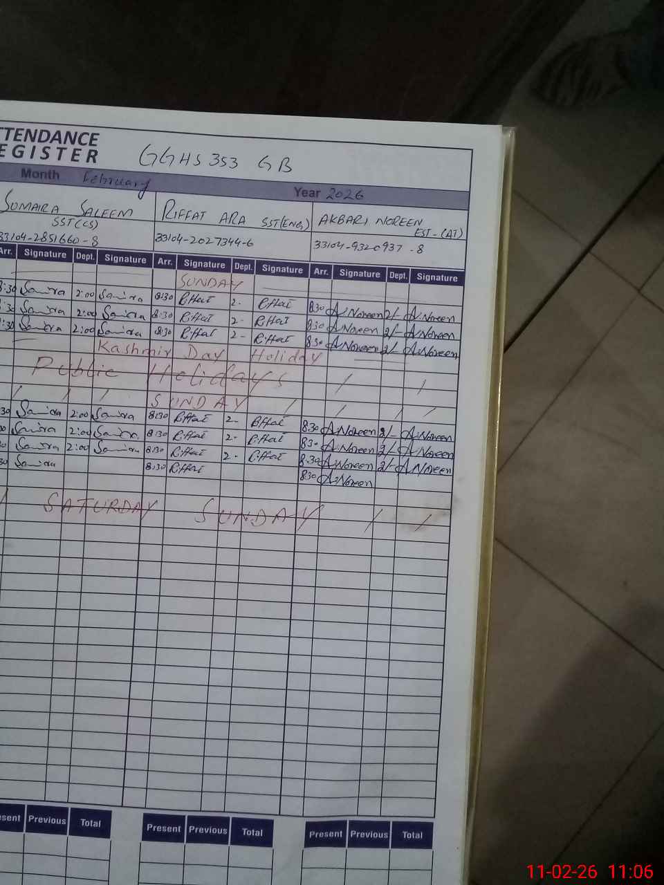 | Monitoring Date: 11-02-2026 | Start Time: 11-02-2026 10:17 AM | End Time: 11-02-2026 11:08 AM | Name of MEA: AR**** HA**** | |
