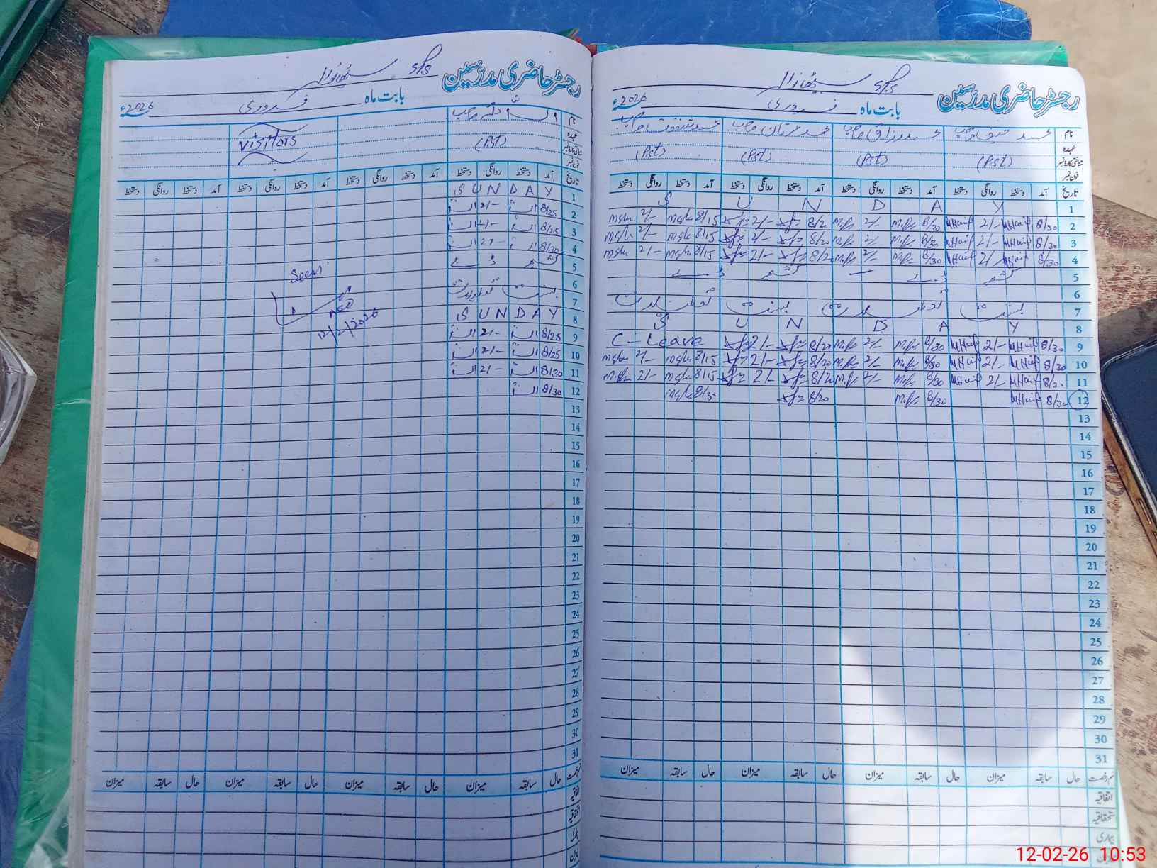 | CNIC | Full Name | Designation | R/C | Absence During Last Calender Month |