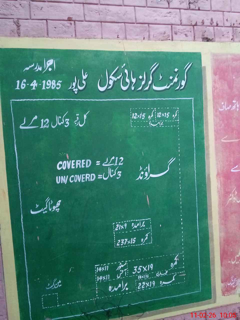| EMIS Code: 33220173 | Name of School: GGHS ALI PUR | |||