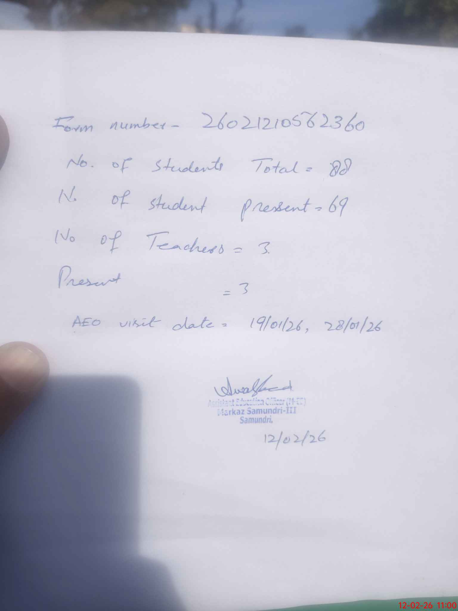 | Attendance Register | Head Teacher | MEA with School | Visit Proof |