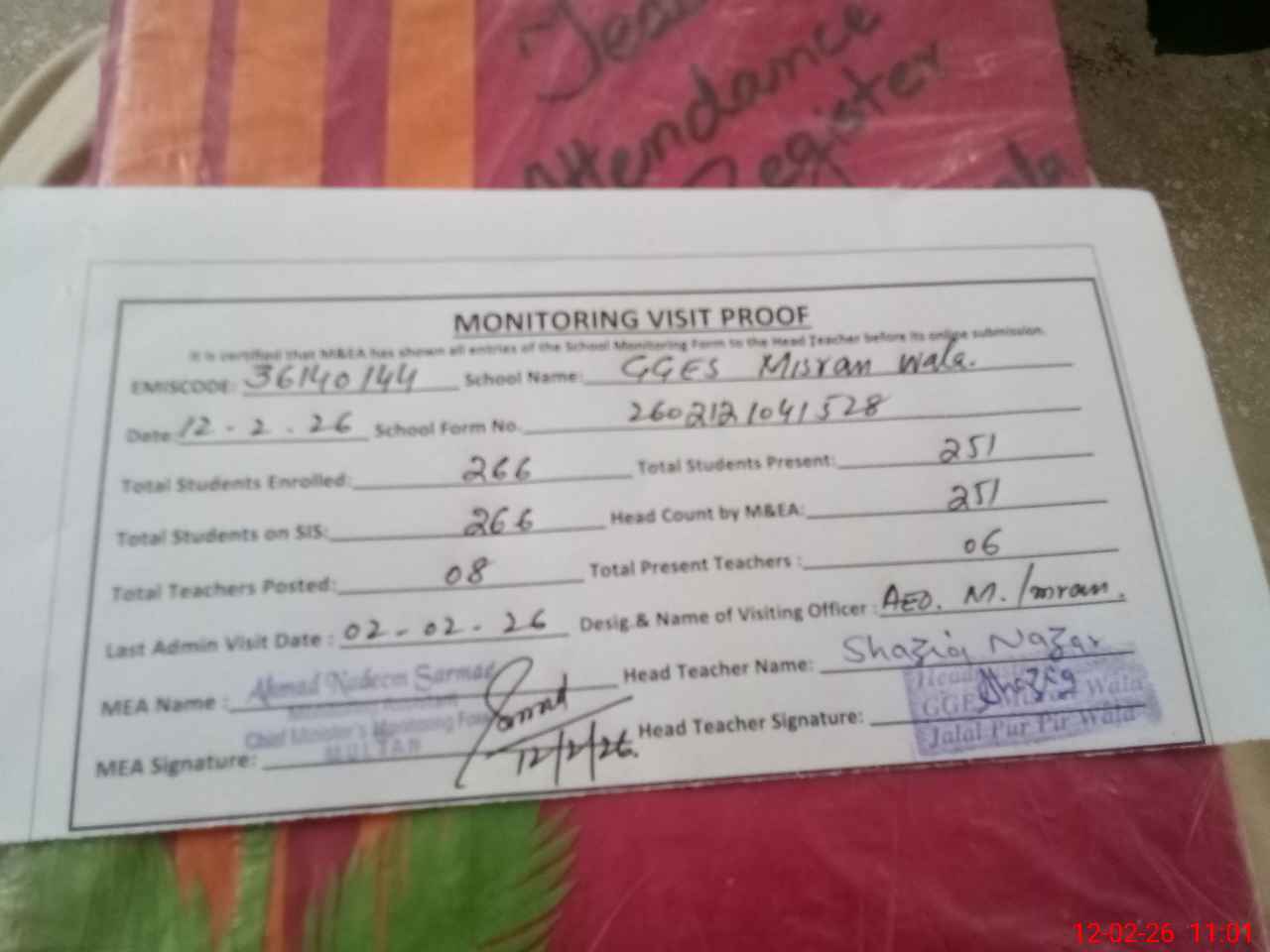 | EMIS Code: 36140144 | Name of School: GGES MISRAN WALA | |||