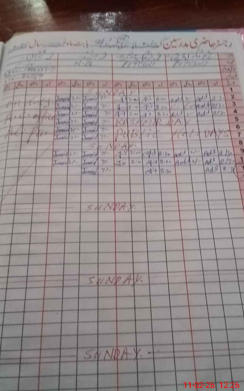 | CNIC | Full Name | Designation | R/C | Absence During Last Calender Month |