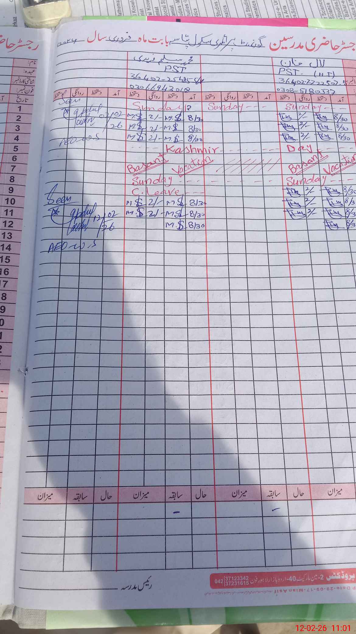 | Name: LA**** KH**** Designation: (School Headmaster's/Headmistress's) Pst(SC - MATH) Phone/Cell Number: 03**** |